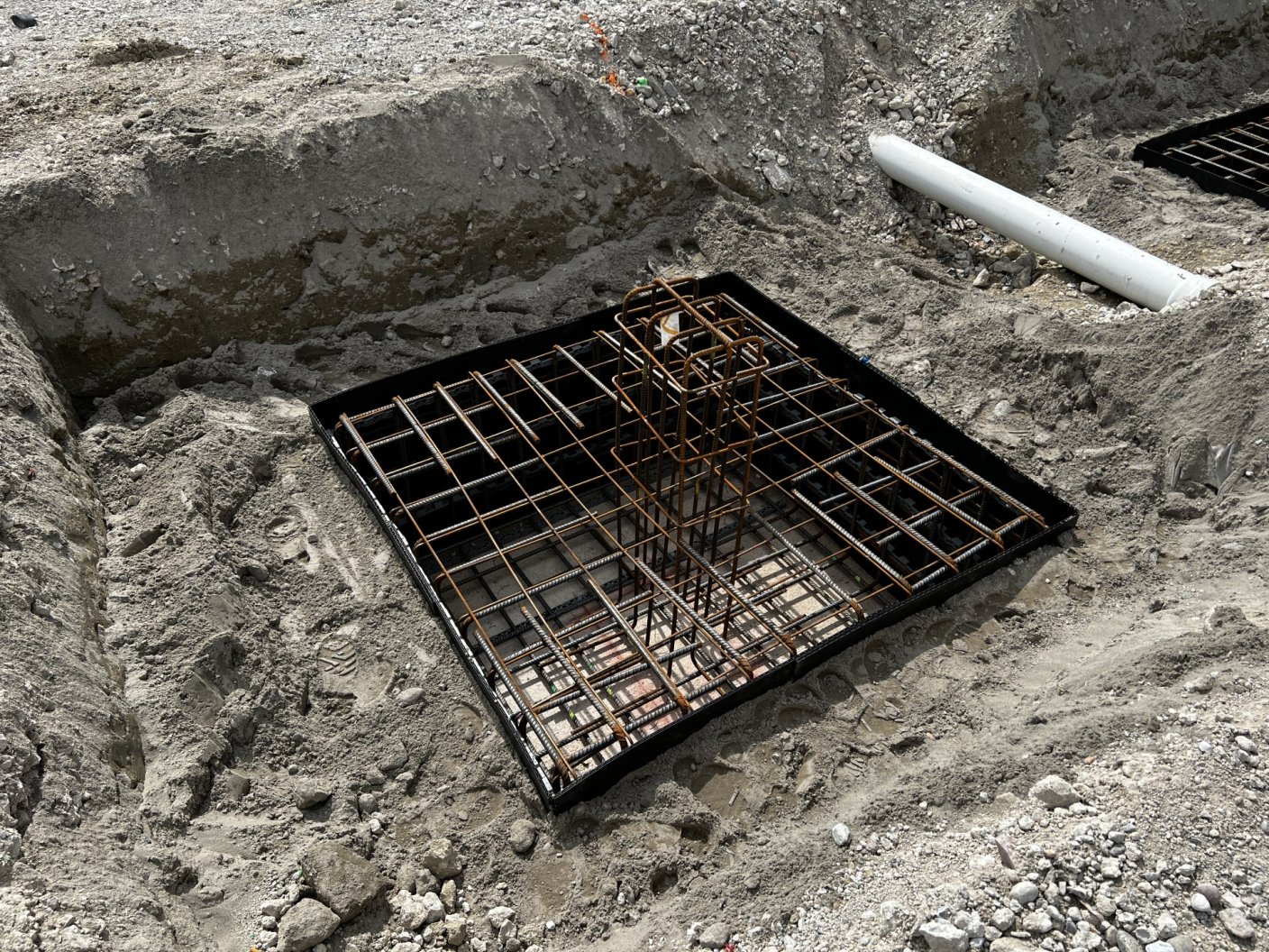 Currently, the office section is being concreted and the entire foundations on the site have been completed. The next step will be the construction of the columns on the existing foundations and the concreting of the fire wall.