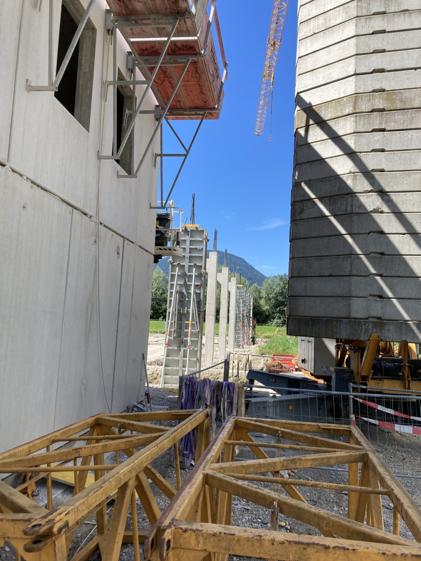 Since mid-June, the concrete work has continued. Currently, the 2nd floor in the office section is being concreted and the formwork for the exterior concrete columns is being prepared.