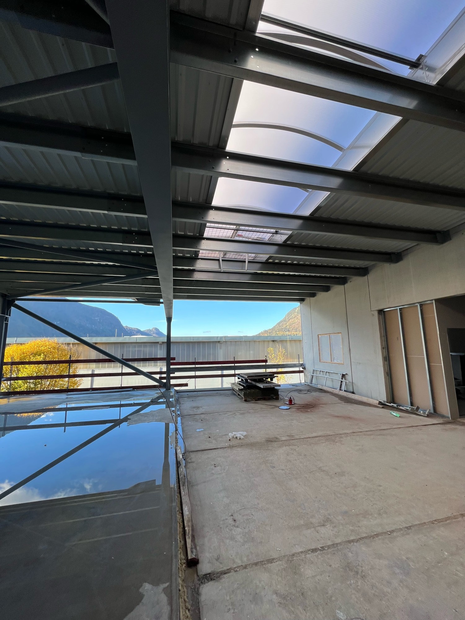 In the last few weeks, the interior finishing of the offices has begun, respectively the installation of the skylights/light domes. As the next milestone, the installation of the panels has been started since week 43. The completed installation of the panels is planned for week 45.