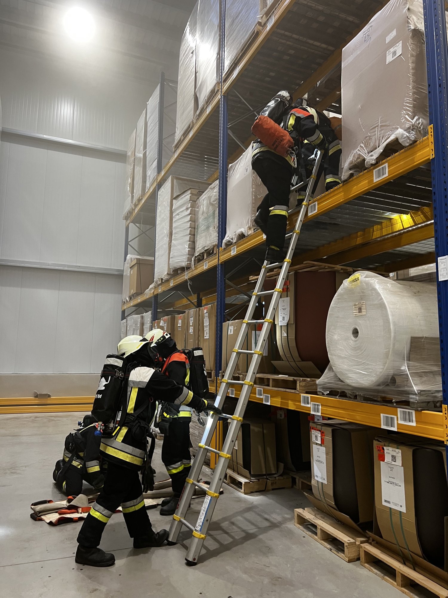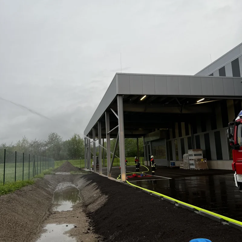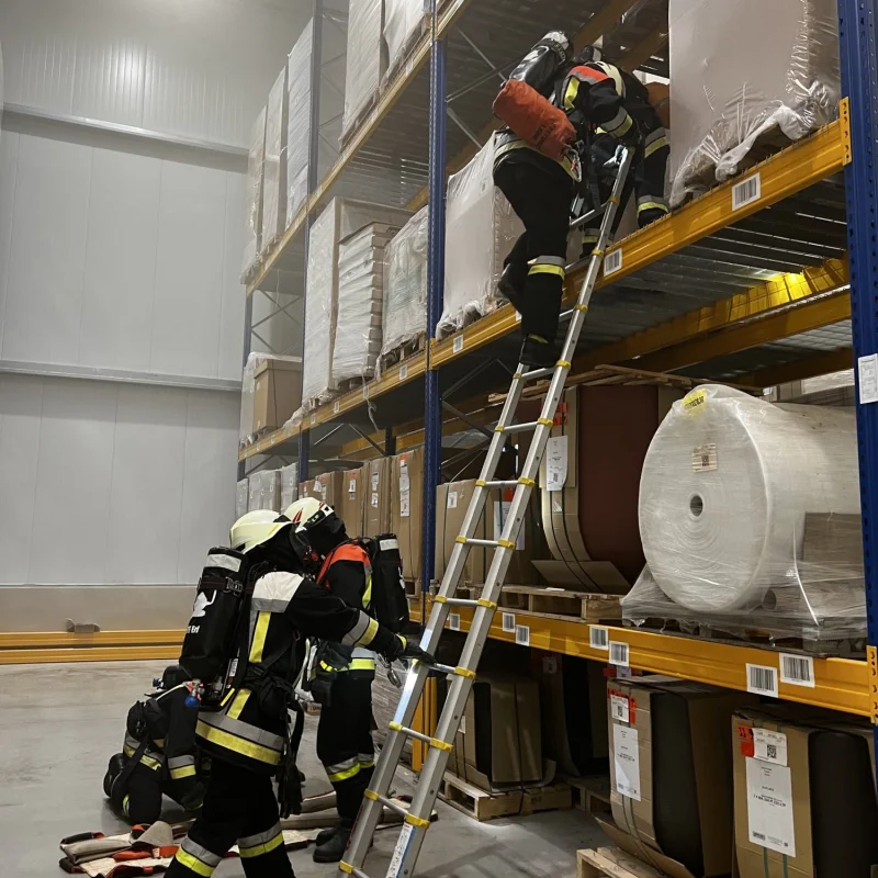 During this year's fire drill at our site on 11.05.2023, the new high-bay warehouse was completely fogged in and the search and rescue of two trapped persons was simulated. We would like to thank the Erl Fire Department for the successfully completed exercise and are already looking forward to the upcoming training of our employees in handling the various fire extinguishing agents.