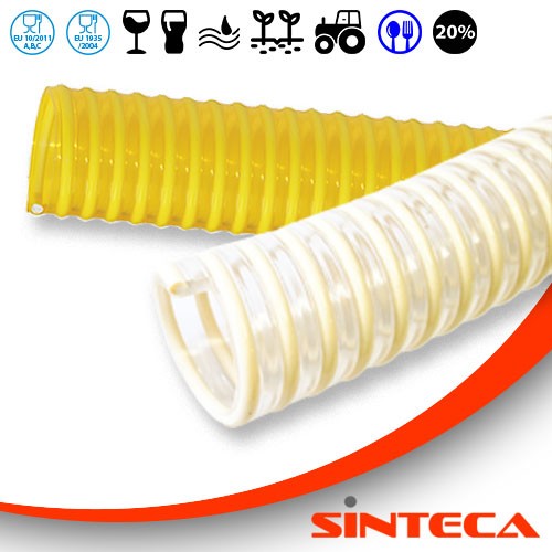 Lebensmittelecht nach Reg. EU 10/2011 (Klasse A,B,C) und CE 1935/2004.ID mm AD mm Überdruck bar Unterdruck m/Ws min. Biegeradius mm Gewicht kg/m max. Länge m Artikelnr. 13 18,8 10 8 65 0,16 50 900740 19 25,6 8 8 95 0,27 50 900742 25 32 7,5 8 125 0,30 50 900743 30 37 7 8 150 0,38 50 900744 32 39,4 7 8 160 0,40 50 900745 35 42,6 7 8 175 0,47 50 900746 38 46 7 8 190 0,50 50 900747 40 48,4 6,5 8 200 0,54 50 900748 51 59,6 5,5 8 255 0,77 50 900750 60 69 5 8 300 0,90 50 900752 70 80 4 8 350 1,08 50 900754 80 90,6 4 8 400 1,44 50 900756 100 112,6 4 8 500 1,98 30 900758 -