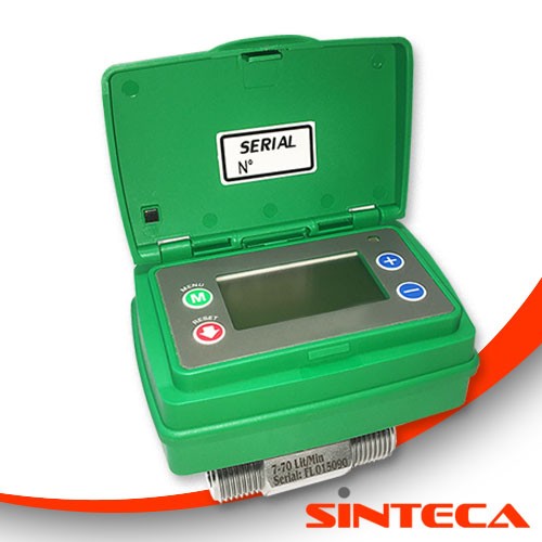 Anwendung: Digitaler Durchflusszähler mit batteriebetriebener Displayeinheit und integriertem Sensor zur Messung von Flüssigkeiten im Lebensmittelbereich. Komplett getrennte Durchflusseinheit in Edelstahl AISI316 mit PVDF Durchgang und Turbine. Displayeinheit mit integriertem Durchflusssensor, absoluter Durchfluss (nicht rückstellbar) und aktueller Durchfluss (rückstellbar), sowie hinterleuchteter Anzeige.