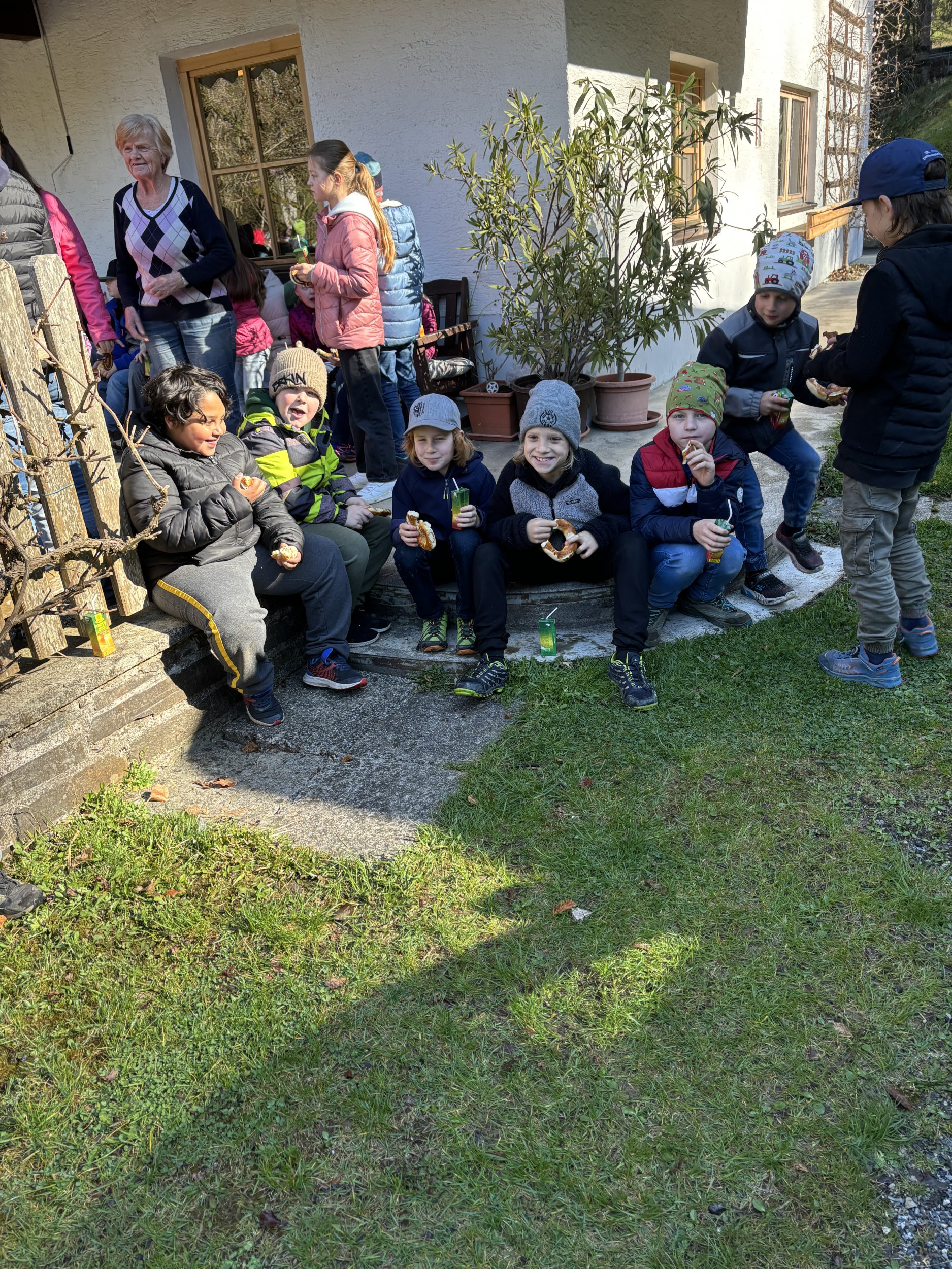 Nach dieser aufregenden Aktion gab es eine wohlverdiente Pause: Bei einer kleinen Stärkung konnten sich die Kinder nach der Wanderung erholen und die Erlebnisse des Tages gemeinsam Revue passieren lassen.