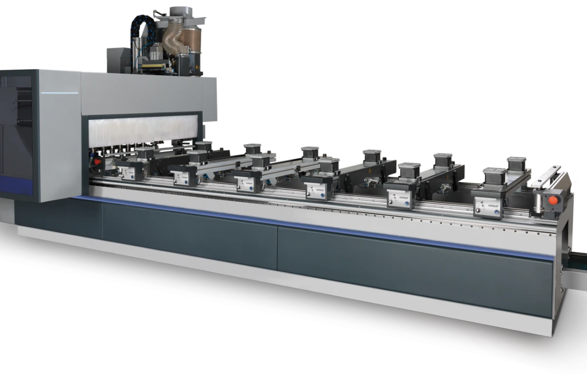 Mit nur wenigen Standardwerkzeugen muss ein möglichst großes Leistungsspektrum abgedeckt werden, um die Folgekosten für Spezialaggregate und Fräsköpfe möglichst gering zu halten. Das neue CNC-Bearbeitungszentrum deckt genau diese Anforderungen wie keine zweite Maschine ab und bietet hochmoderne 5-Achs-Technologie bei einem überschaubaren Investitionsvolumen. Die leistungsstarke Frässpindel ermöglicht materialunabhängig exzellente Ergebnisse in jedem Winkel. Zusammen mit 18 einzeln abrufbaren Bohrspindeln und dem integrierten Nutsägeaggregat verfügt die Fräse über grenzenlose Bearbeitungsvielfalt und realisiert kürzeste Produktionszyklen.