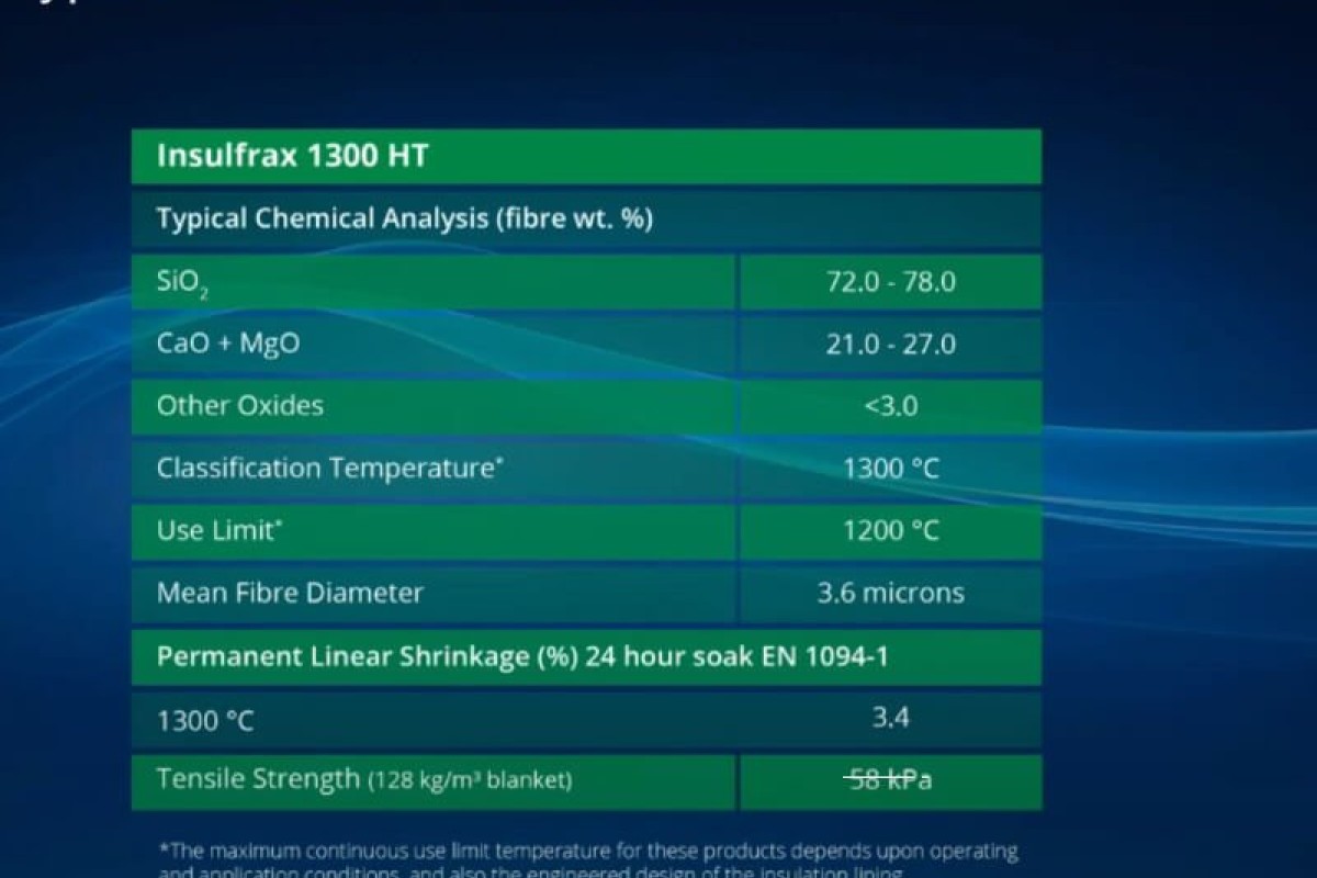 Die neuen Insulfrax ® 1300 HT Matten sind vollständig anorganisch und bindemittelfrei und haben eine glatte Oberfläche. Sie behalten ihre Festigkeit, Flexibilität und thermischen Eigenschaften in zahlfreigen Anwendungen bei, ohne jeglisches Auftretren von Rauch- oder Dampfentwicklung.
