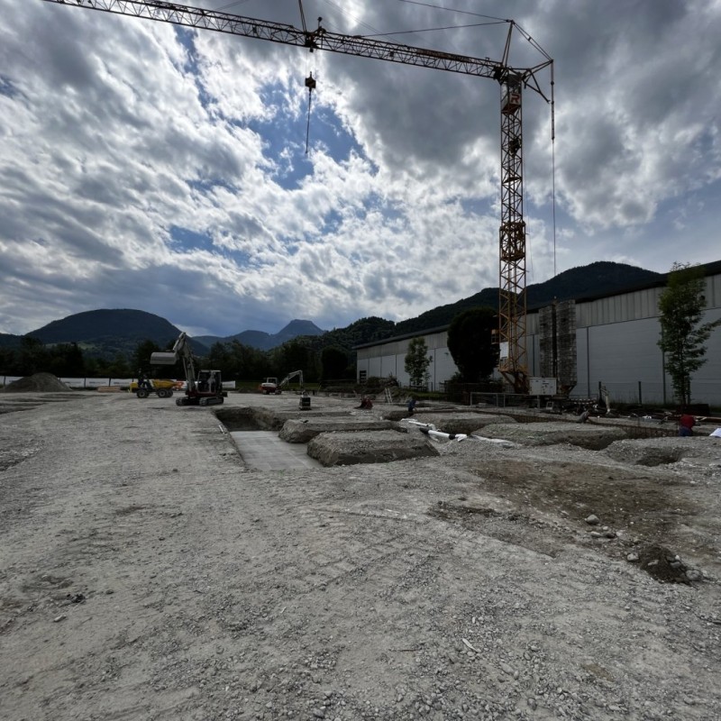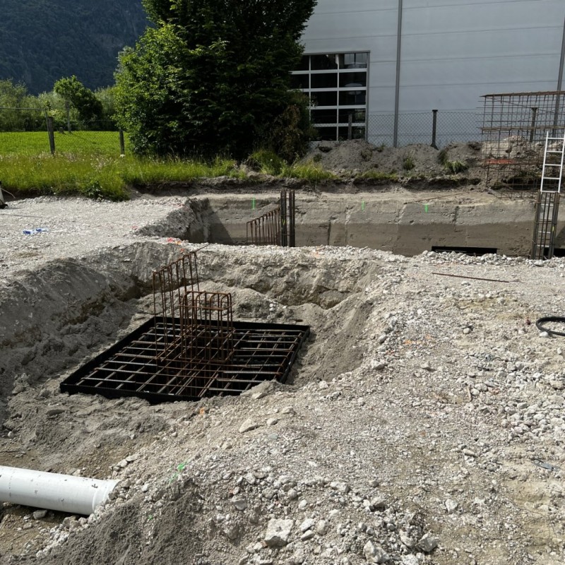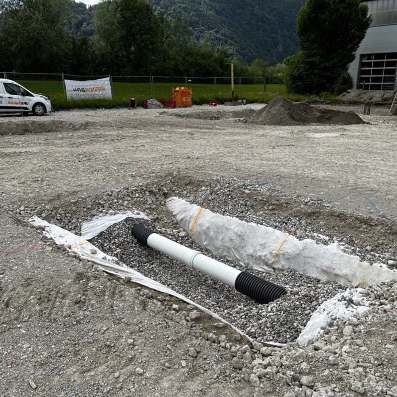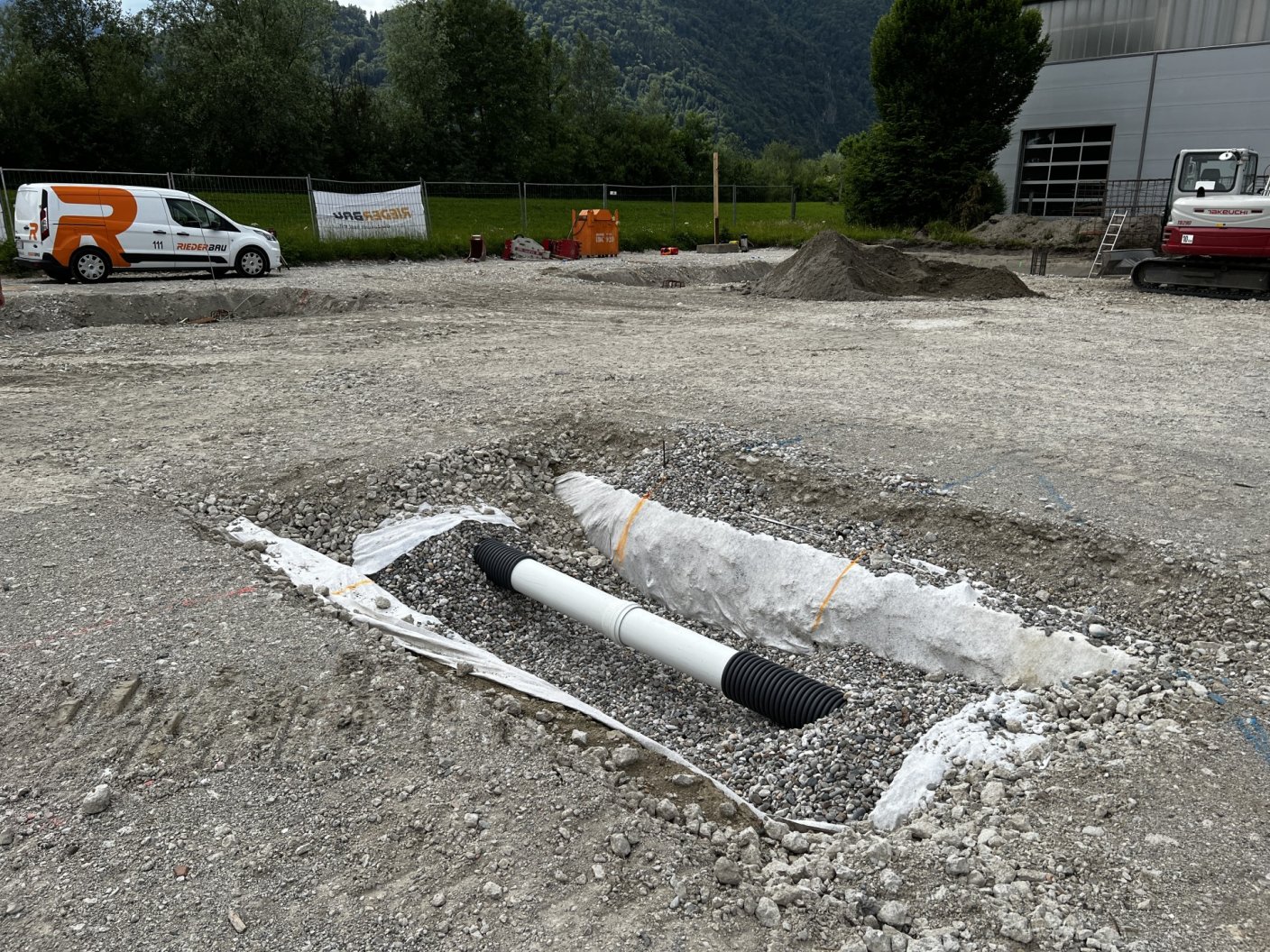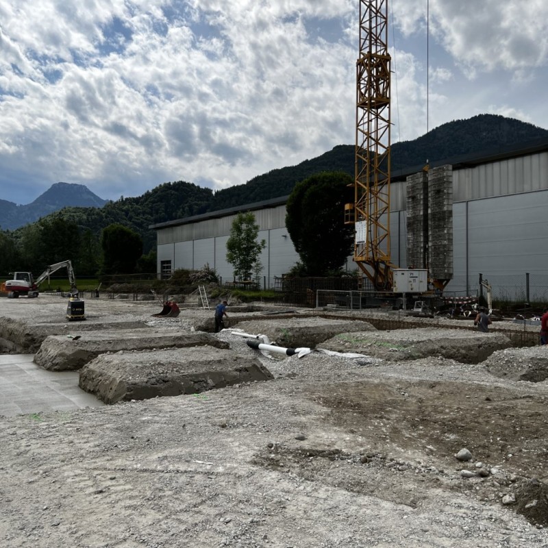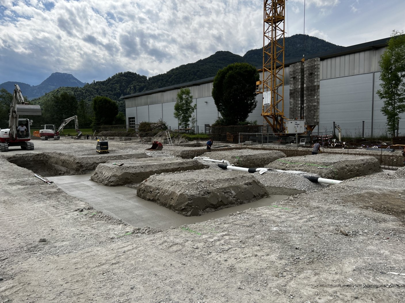 Seit 2. Mai hat die Firma Rieder Bau mit dem Bau der Sickeranlagen & Fundamente für die neue Produktions- und Lagerhalle unter der Federführung des Generalunternehmers ATC begonnen.