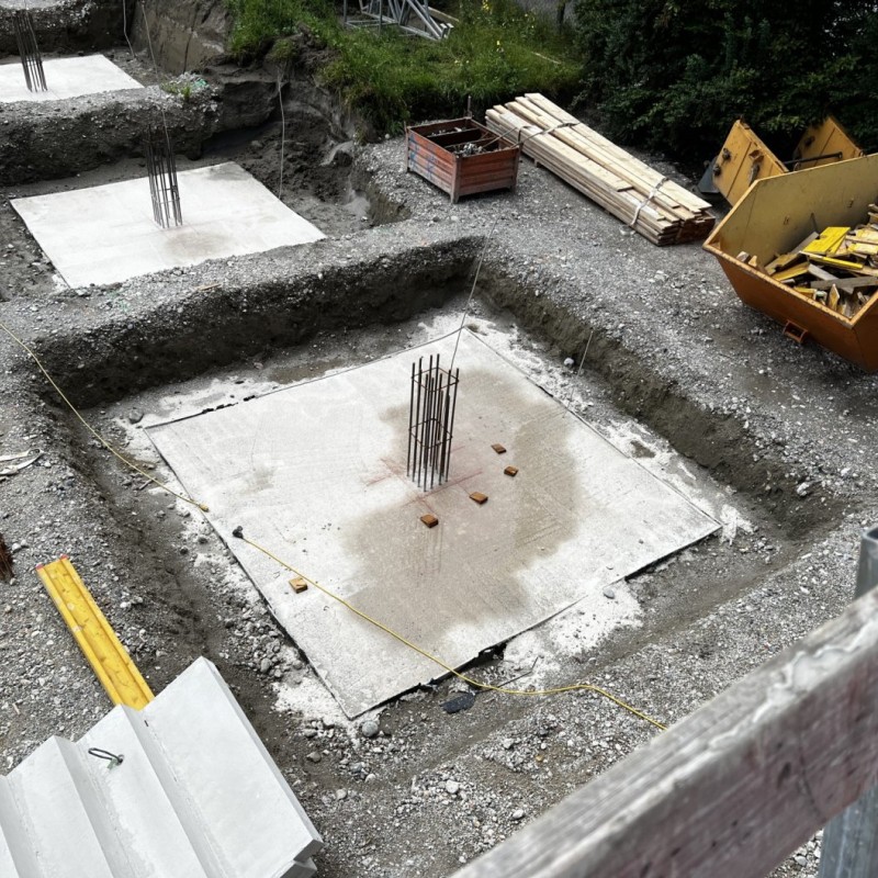 Aktuell wird der Bürotrakt betoniert bzw. wurden die Gesamten Fundamente auf dem Gelände fertiggestellt. Nächster Schritt wird das Herstellen der Säulen auf die bestehenden Fundamente sein bzw. das Betonieren der Brandabschnittsmauer.
