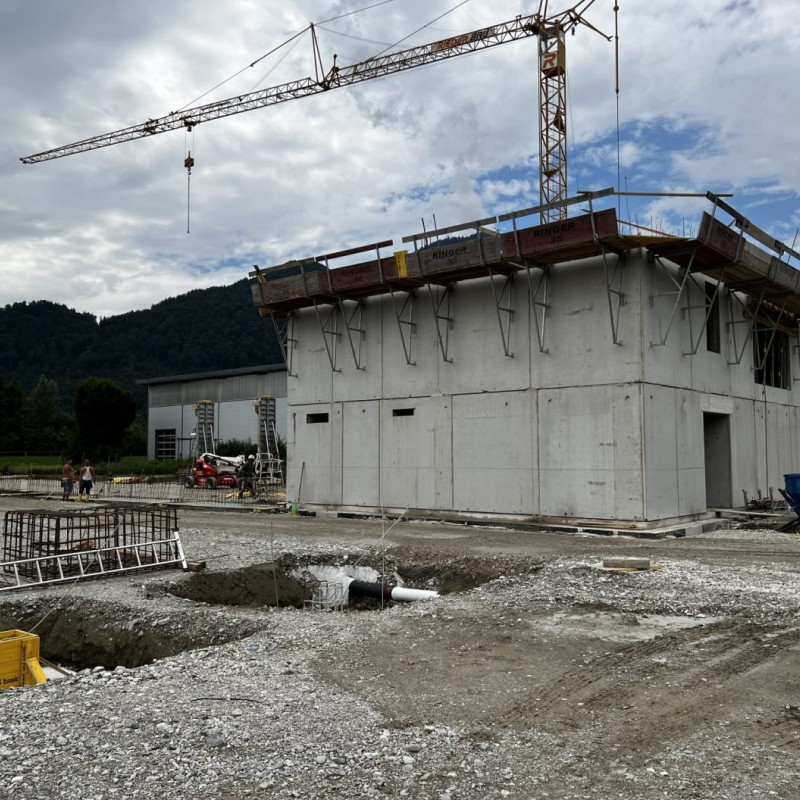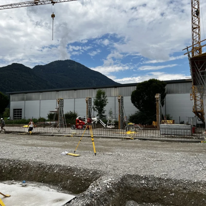 Seit 2. Mai hat die Firma Rieder Bau mit dem Bau der Sickeranlagen & Fundamente für die neue Produktions- und Lagerhalle unter der Federführung des Generalunternehmers ATC begonnen.