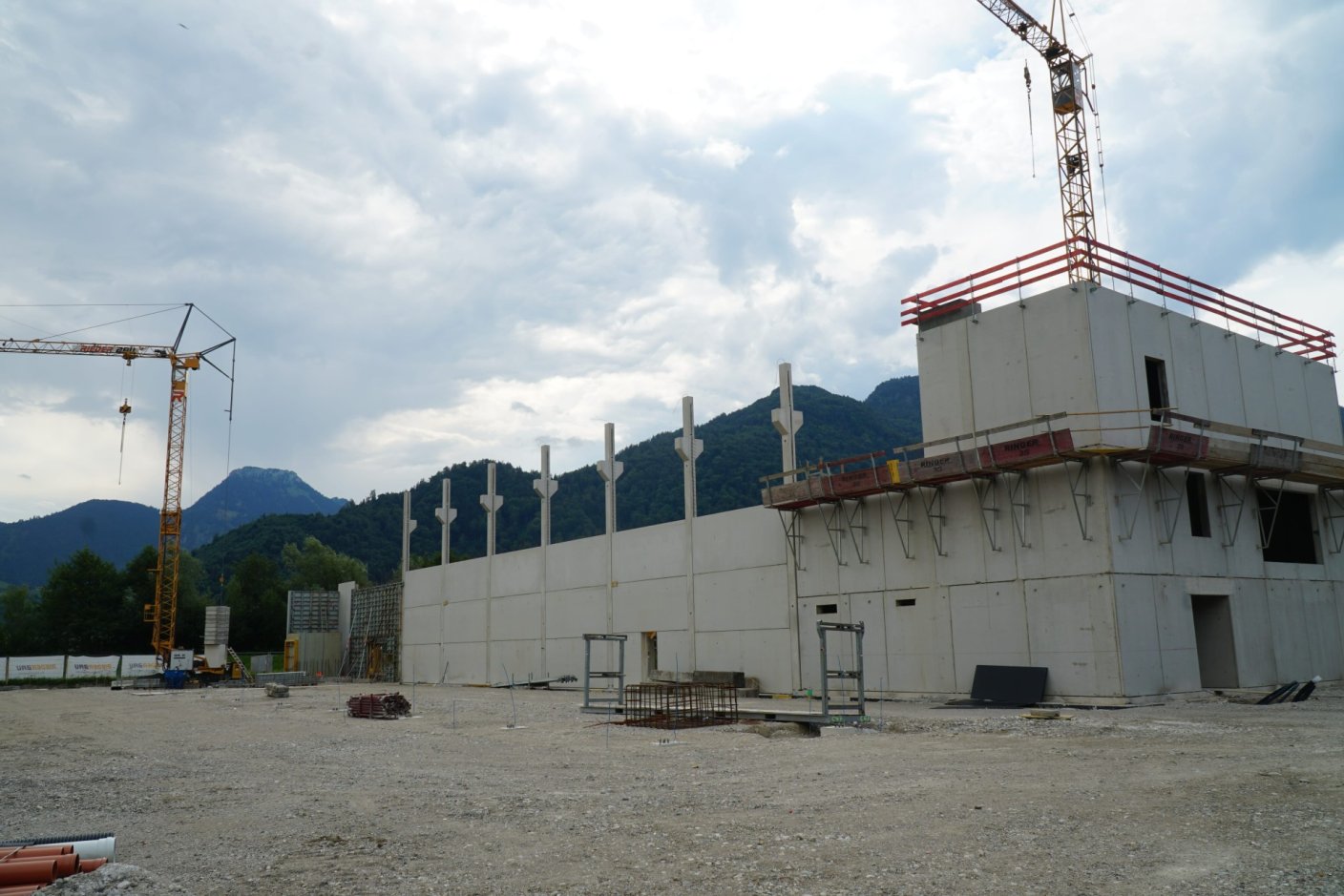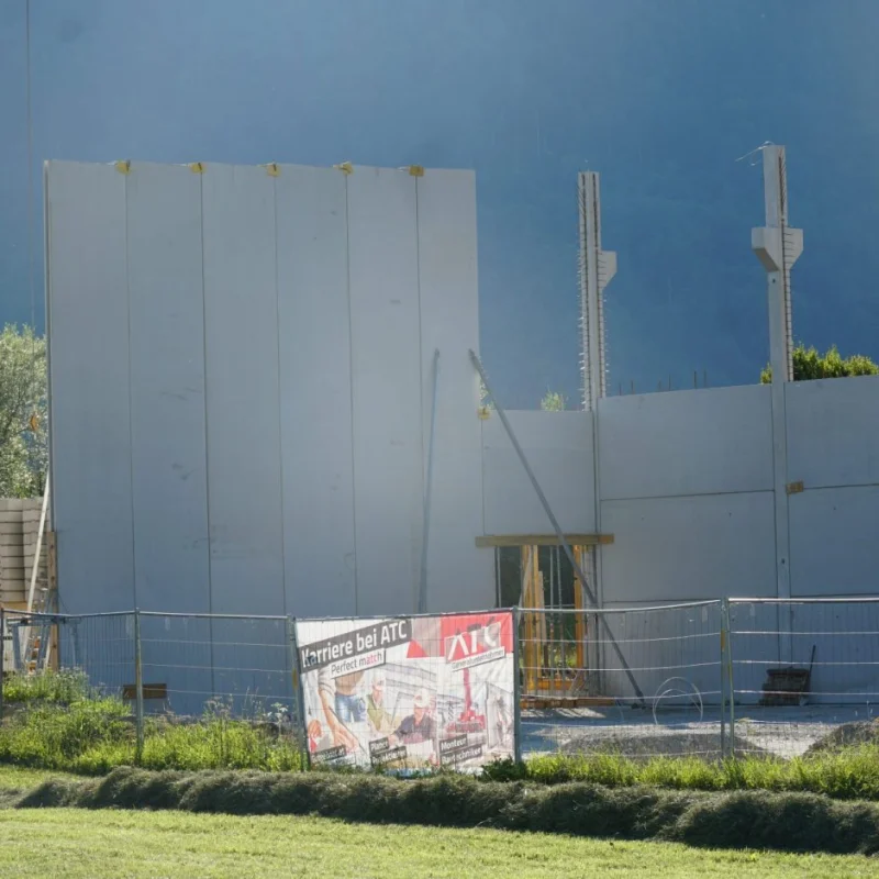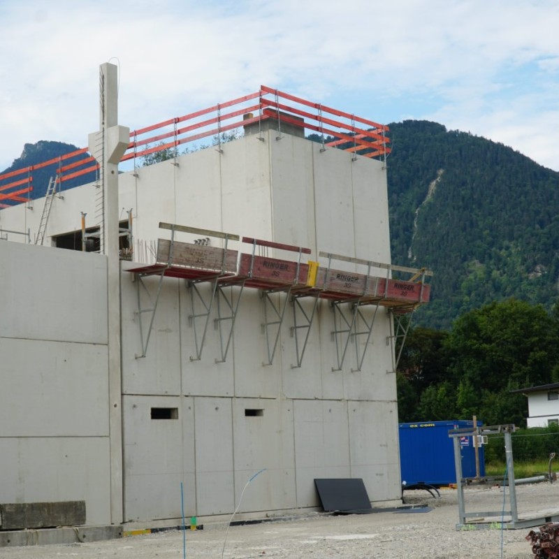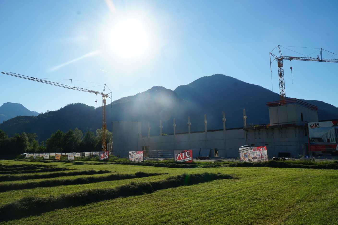 Die Firma Rieder Bau ist bis KW36 mit dem Ausführen der Betonarbeiten beschäftigt. Danach beginnt nahtlos der Generalunternehmer ATC mit der Aufstellunge des Stahlbaues für den Flugdach und Lagerbereich. Sobald diese Arbeiten erledigt sind wird das Dach hergestellt und dann die Aussenhülle mit Paneelen versehen.