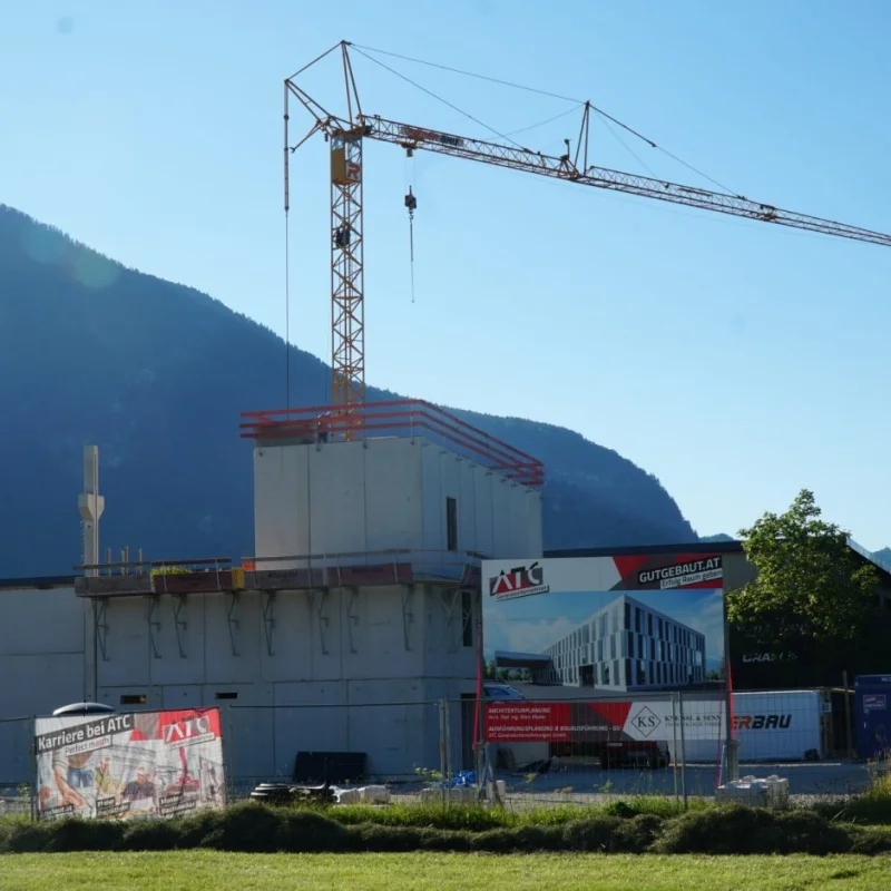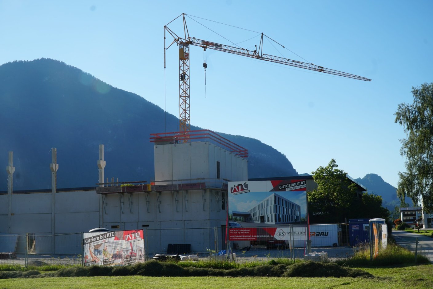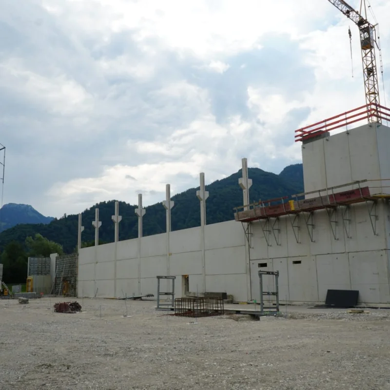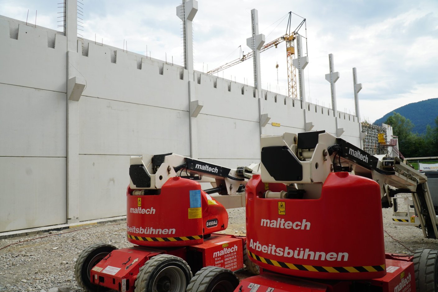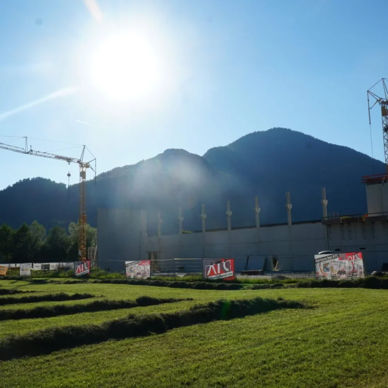 Die Firma Rieder Bau ist bis KW36 mit dem Ausführen der Betonarbeiten beschäftigt. Danach beginnt nahtlos der Generalunternehmer ATC mit der Aufstellunge des Stahlbaues für den Flugdach und Lagerbereich. Sobald diese Arbeiten erledigt sind wird das Dach hergestellt und dann die Aussenhülle mit Paneelen versehen.