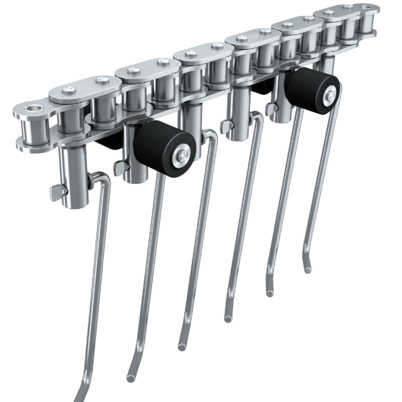 Unsere Rollenketten nach DIN 8187 und DIN 8188 werden als Antriebsketten wie auch als Förderketten seit Jahren in diversen Branchen eingesetzt. Wir bieten Rollenketten in Einfach-, Zweifach- oder Dreifachausführungen. Zum Transport von Ware oder Materialien, liefern wir die Rollenketten mit speziellen Mitnehmern oder Befestigungslaschen.