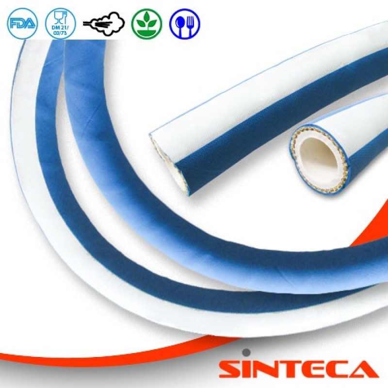 • Gummischlauch in Lebensmittelqualität, speziell entwickelt für Waschvorgänge mit Sattdampf (bis zu +164°C) und Heißwasser.
