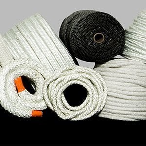 - Biolösliche Faser (1200°C): biolösliche Fasern erfordern für die Verarbeitung zu Garnen eine Verstärkung durch Glasfasern (reduziert die Klassifikationstemperatur der Textilien auf 850°C, da bei dieser Temperatur die Glasverstärkung kristallisiert) oder Metallfasern (Klassifikationstemperatur 1200 C)
