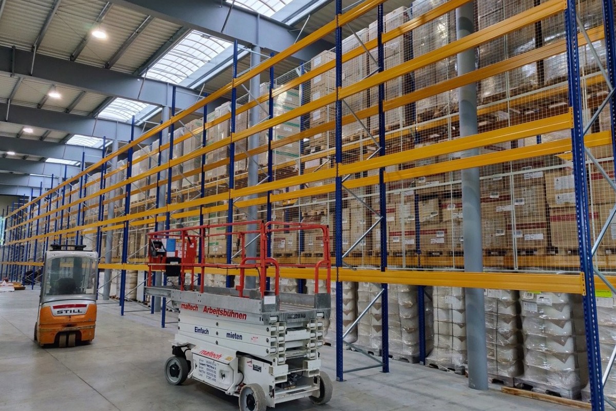 Umfang: 2500 m² Hochregal-Lagerfläche inkl. Flugdach.